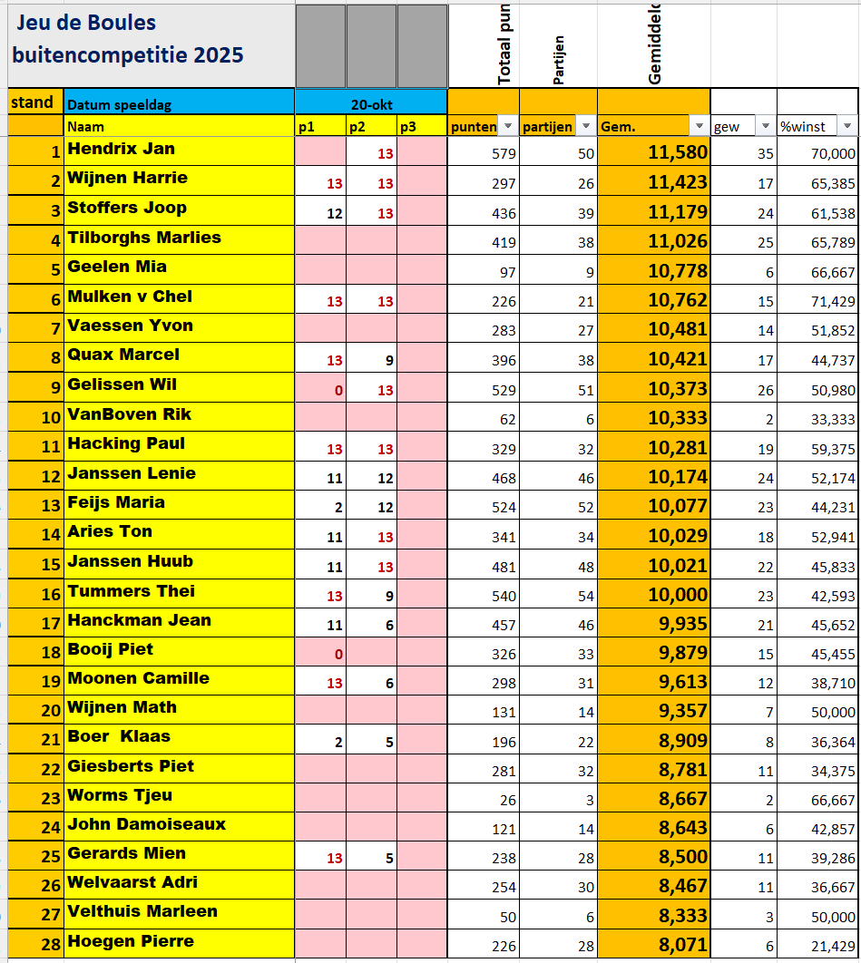 60%= 32 partijtjes verplicht voor plaats in de eindstand.