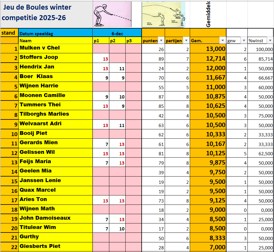 De eerste rondes v/d wintercompetitie zijn gespeeld.
